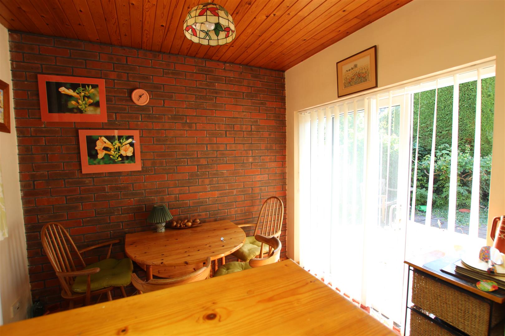 Wooden clad ceiling, ceiling light point, upvc double glazed window to the front aspect, upvc double glazed sliding door giving access onto the rear garden.