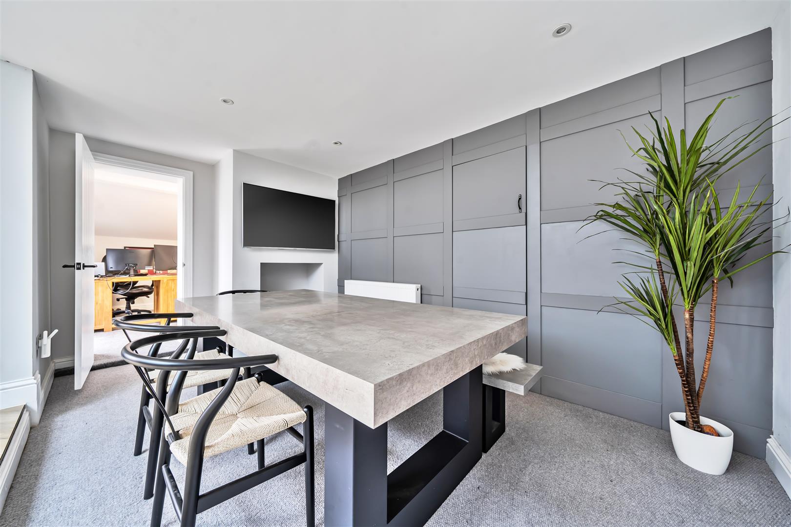 Feature panelled wall with 'hidden' door.