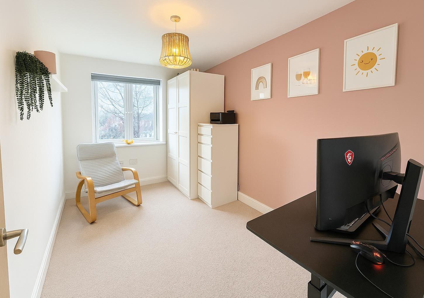 The room benefits from a fitted, mirror fronted wardrobe providing hanging rail and storage.