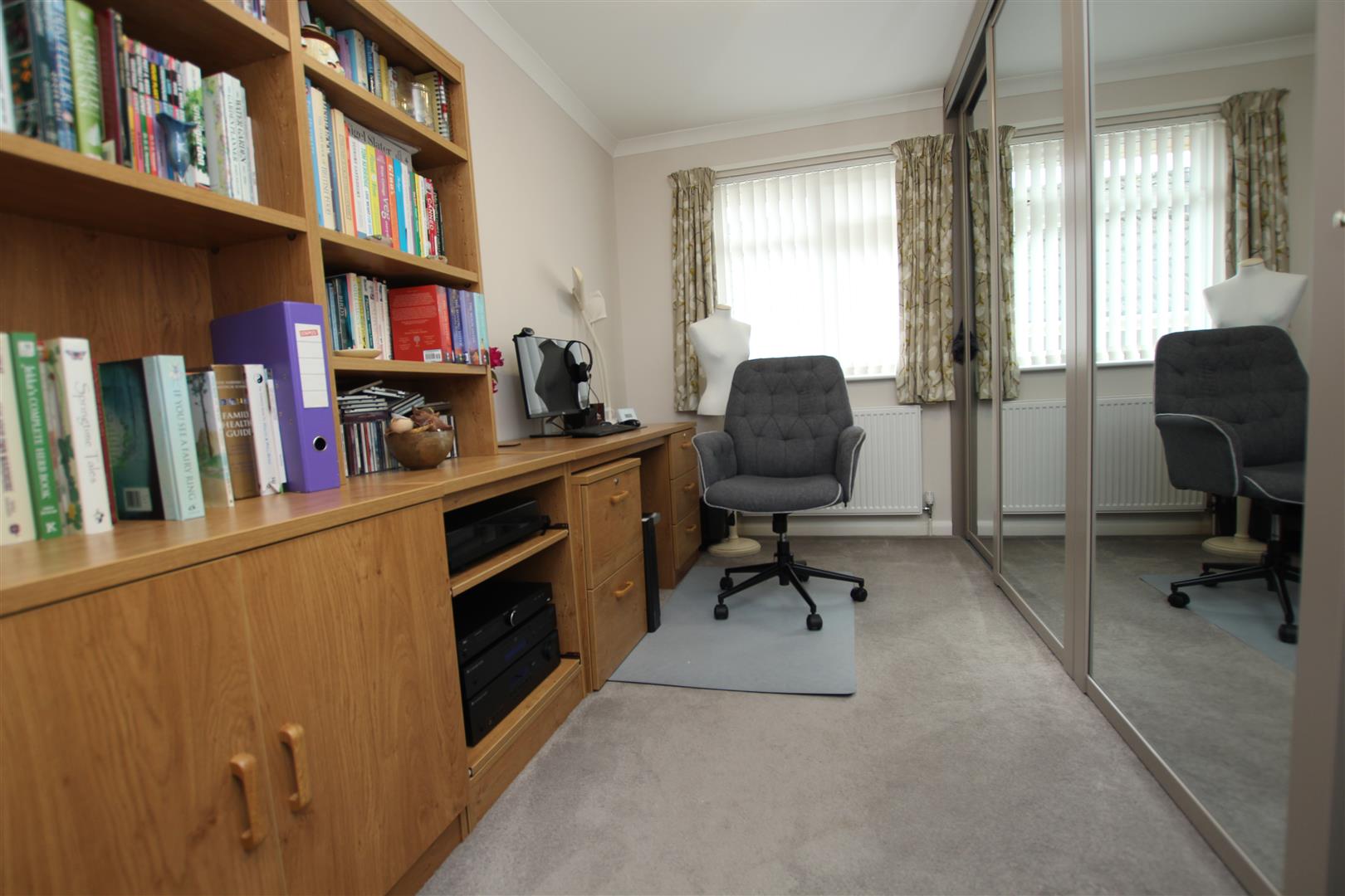 This room benefits from a good range of fitted wardrobes with mirrored sliding doors providing a good degree of hanging rail and storage.
