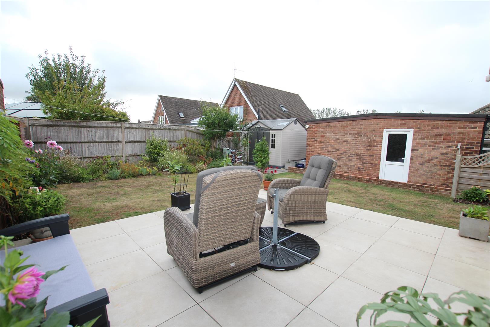 Stepping out onto an area laid to patio providing a pleasant seating area.