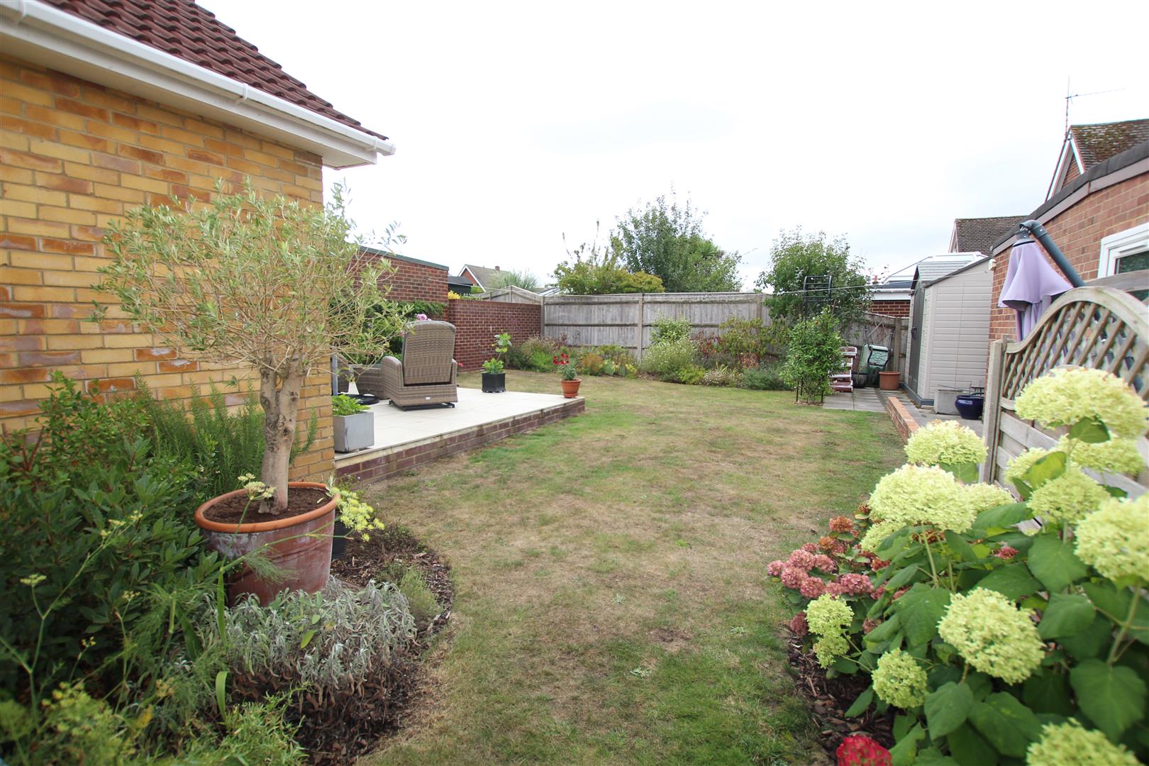 The garden is principally laid to lawn with borders, to the rear boundary is an area laid to hard standing suitable for a garden shed.